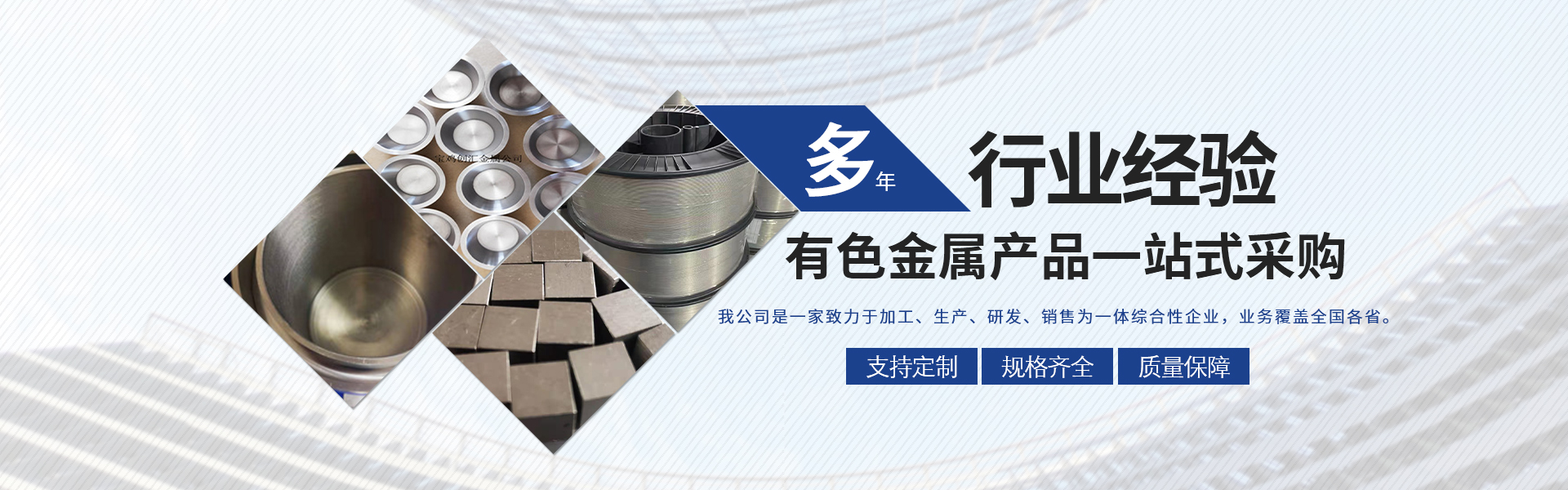 寶雞市創(chuàng)匯金屬材料有限公司,位于有“中國(guó)鈦谷”之稱寶雞寶鈦路南段,這里也是國(guó)家重點(diǎn)支持和扶持的有色金屬材料資源產(chǎn)業(yè)基地,我司專業(yè)從事鈦、鋯、鉿、鎳鉻、鎢鉬、鉭鈮、合金材料、復(fù)合材料,板、棒、絲、管、箔材等,設(shè)備制造,金屬制品機(jī)械加工銷售。